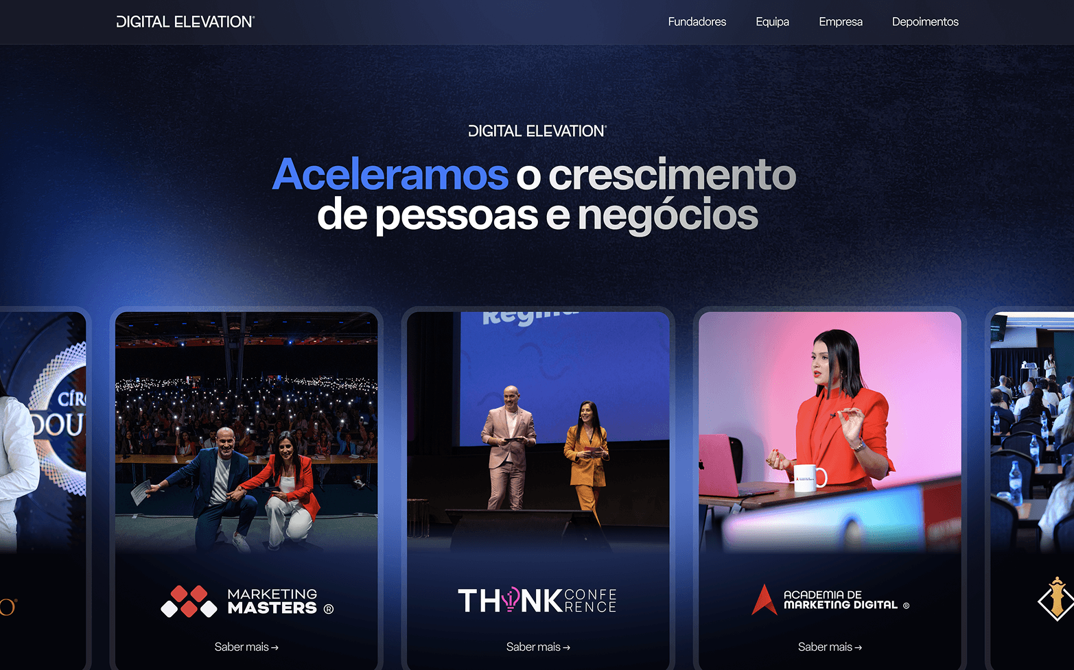 I worked at Digital Elevation, where I was the designer responsible for bringing to life Paulo Faustino's personal brand, the Sales Masters, Checkmate, and Círculo Dourado brands, as well as massive events like Think Conference and Marketing Masters.