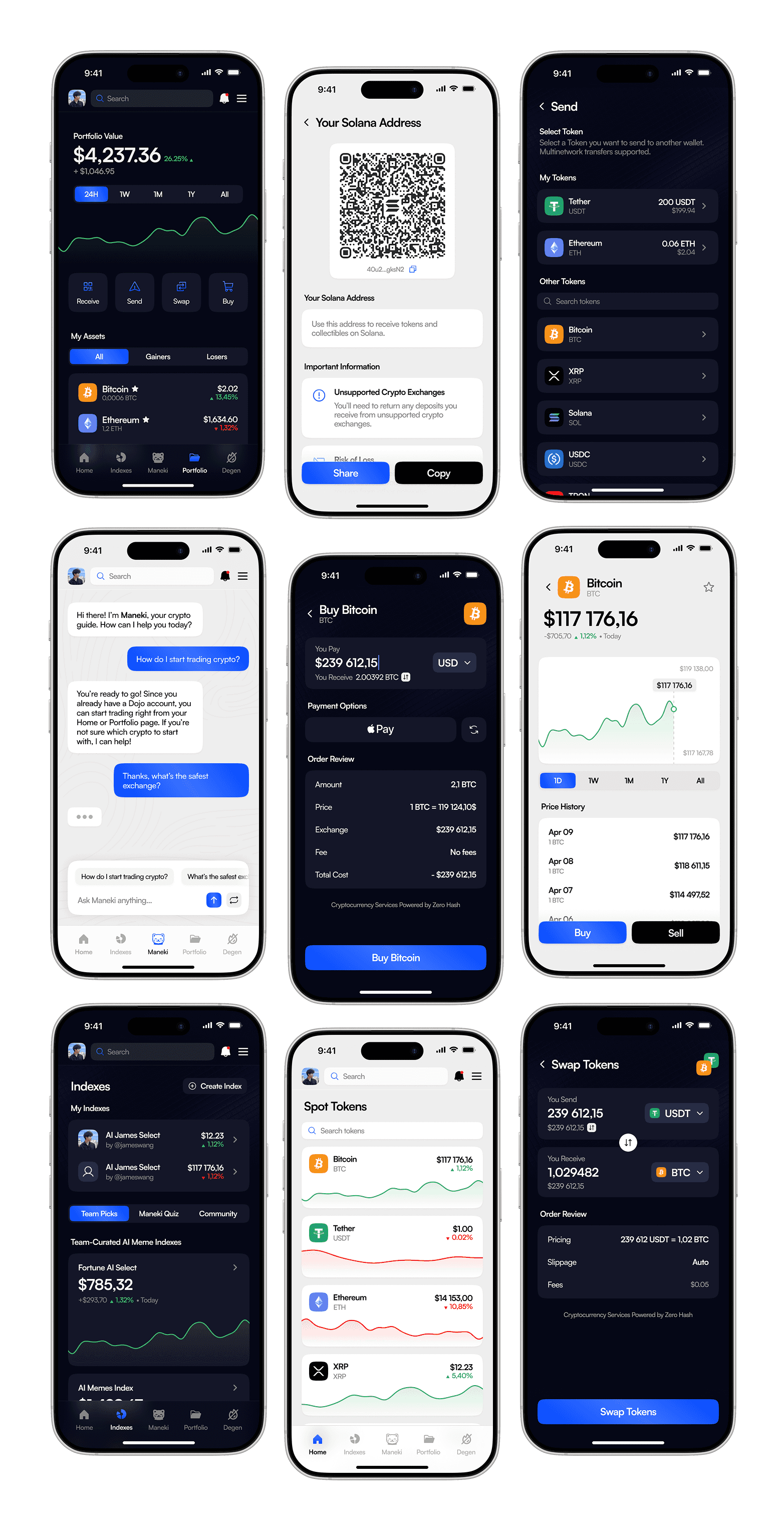 This project was the complete UI/UX design for Dojo, a crypto trading app. The challenge was designing an app that would serve two completely different audiences on a single platform.