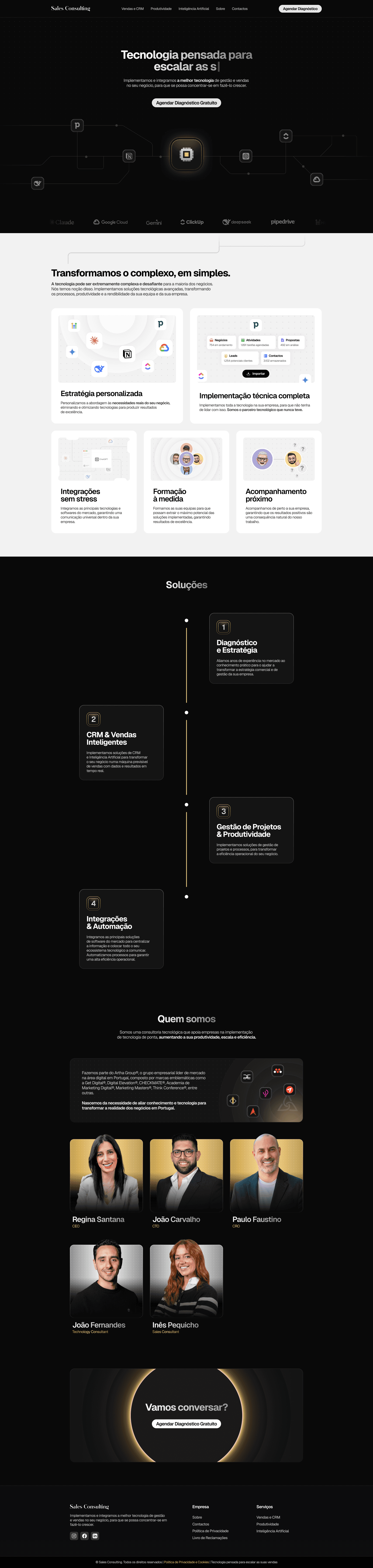 Sales Consulting is a Portuguese company that also operates in the United States and Dubai. Their goal is to implement and integrate management and sales technology in companies that need it. This project came from the company’s need for a modern, high-quality website that would feel both premium and tech-savvy. I designed and developed the entire website.